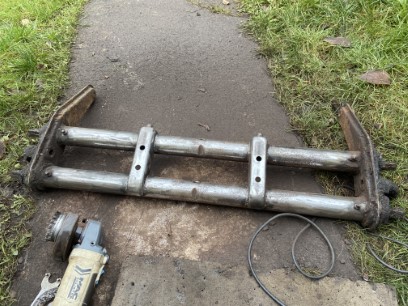 At the front of the floorpan, rather than fabricating a complete now mount, I made one from an old beam that I had lying around. Basically I cut the shock towers off, and welded on uprights on casters to the tubes. I had completely forgotten how much grease were in these, and what a horrid job it was cleaning it all out!