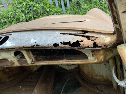 Although not the most essential repair that needs doing the dashboard is literally very much in your face so it was the first repair I started to do. Sadly, it is also one of the most awkward due to the many curves. First step was to grind back all the rust and see just how bad it was….. it was bad.