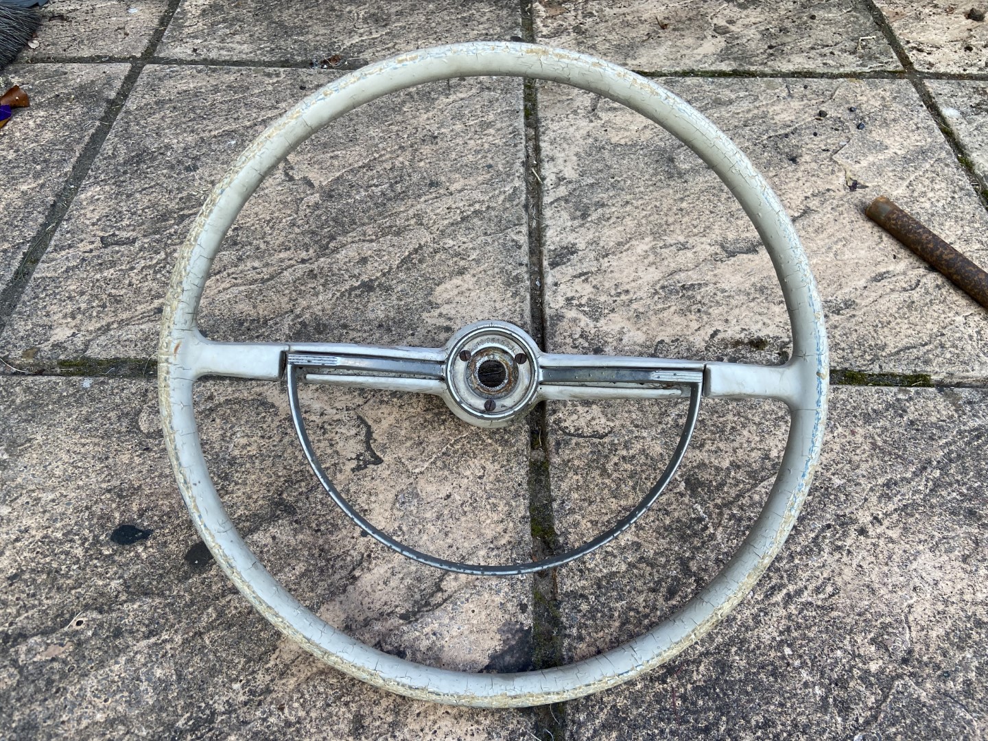 However, looking up the chassis number on specialist websites such as The Karmann Ghia Connection Website (Link 'here') I know that it was produced in 1960, and there are classic crossover car features which support this year, such as the early oval style wheel well with later nostrils, and the one year only steering wheel.