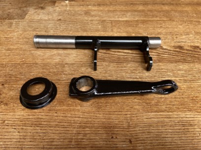 There were a few things that needed sorting. The throw out bearing was missing and the clutch arm shaft had too much play in it, so the first thing I did was to change the clutch shaft bearings, and fit a new the clutch throw out bearing and guide tube. Whilst the clutch fork arm was out I decide to reinforce it using an old racers trick of fully welding the forks up fully. This wasn’t really needed for the mock up box, I just did it because I could.